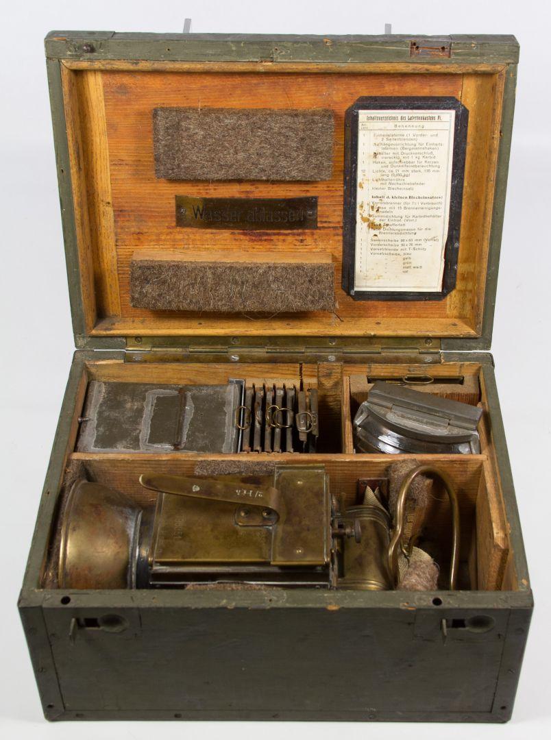 A német bunkerlámpák úgynevezett karbidlámpák. Aki nem ismerné, ennek a működését: kalcium-karbid a "hajtóanyag" amelyre vizet engednek. A kémiai reakció során acetilén gáz és oltott mész keletkezik. 1 kg kalcium-klorid "telibe" azaz szabályozás nélkül 12 óra világítást tett lehetővé. A német lámpáknál a víz menyisége, ezáltal a reakció hevessége azaz a láng erőssége szabályozható volt.